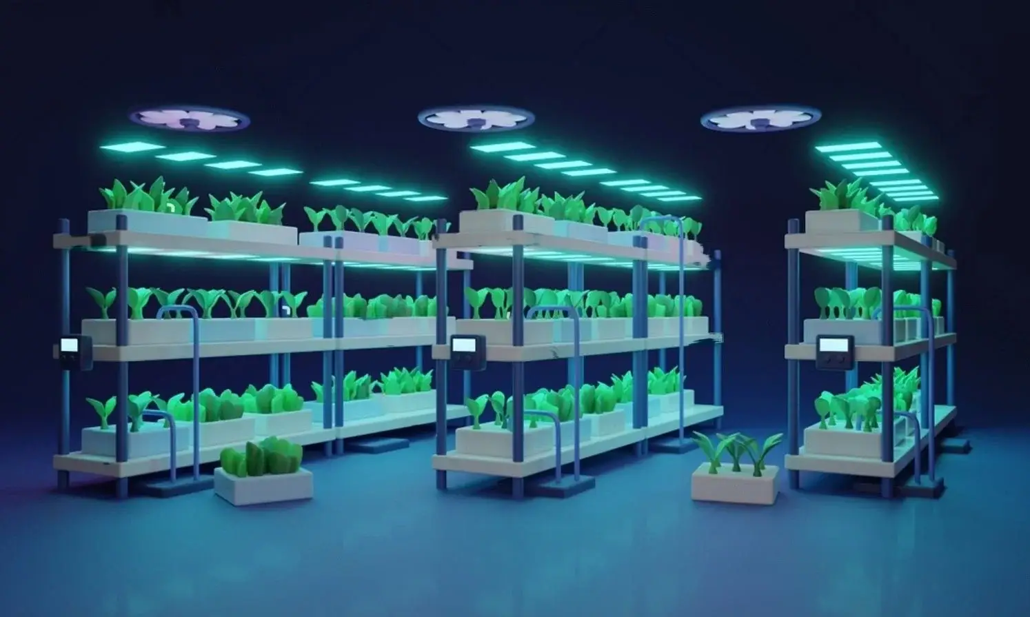 Maximální produktivita: Až 10krát více produktu na metr čtvereční než u konvenčního zemědělství, více sklizní za rok.