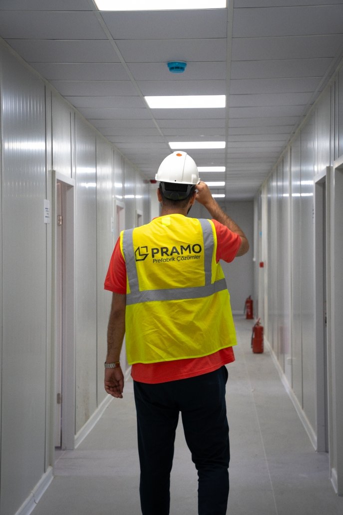 Třípodlažní prefabrikovaná budova o celkové rozloze 3000 m² byla na staveništi připravena k užívání v krátké době pouhých 45 dnů. Tento rychlý proces dodání jasně prokázal odborné znalosti a výrobní schopnosti společnosti Pramo v oblasti technologií montovaných staveb. V projektu kancelářské budovy na staveništi justičního paláce v Ankaře se všech statických výpočtů, architektonického plánování, výroby a montáže ujala společnost Pramo.